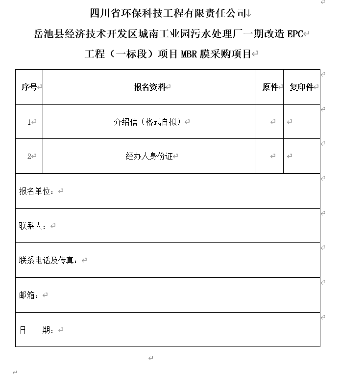 項目名稱:四川省環保科技工程有限責任公司MBR膜采購項目