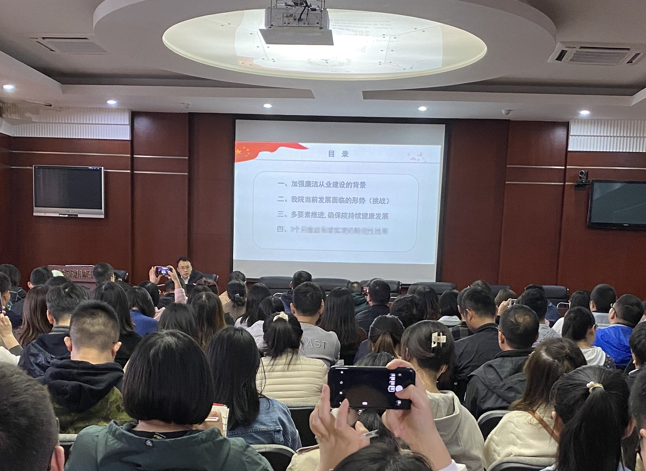為了加強全院廉潔從業建設,提高職工廉潔從業意識,推動形成常態化、制度化的廉潔教育氛圍,10月28日下午,四川省生態環科科學研究院院長劉政為環科院全體職工及下屬公司講授了一堂題為《加強廉潔從業建設 推動持續健康發展》的專題講座,公司黨員及職工代表共5人參加。