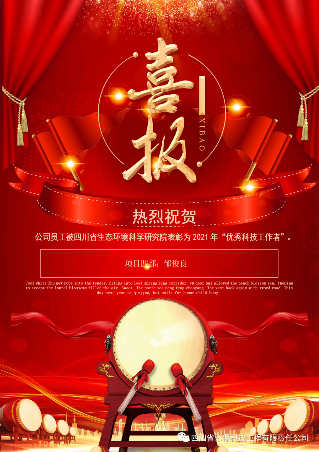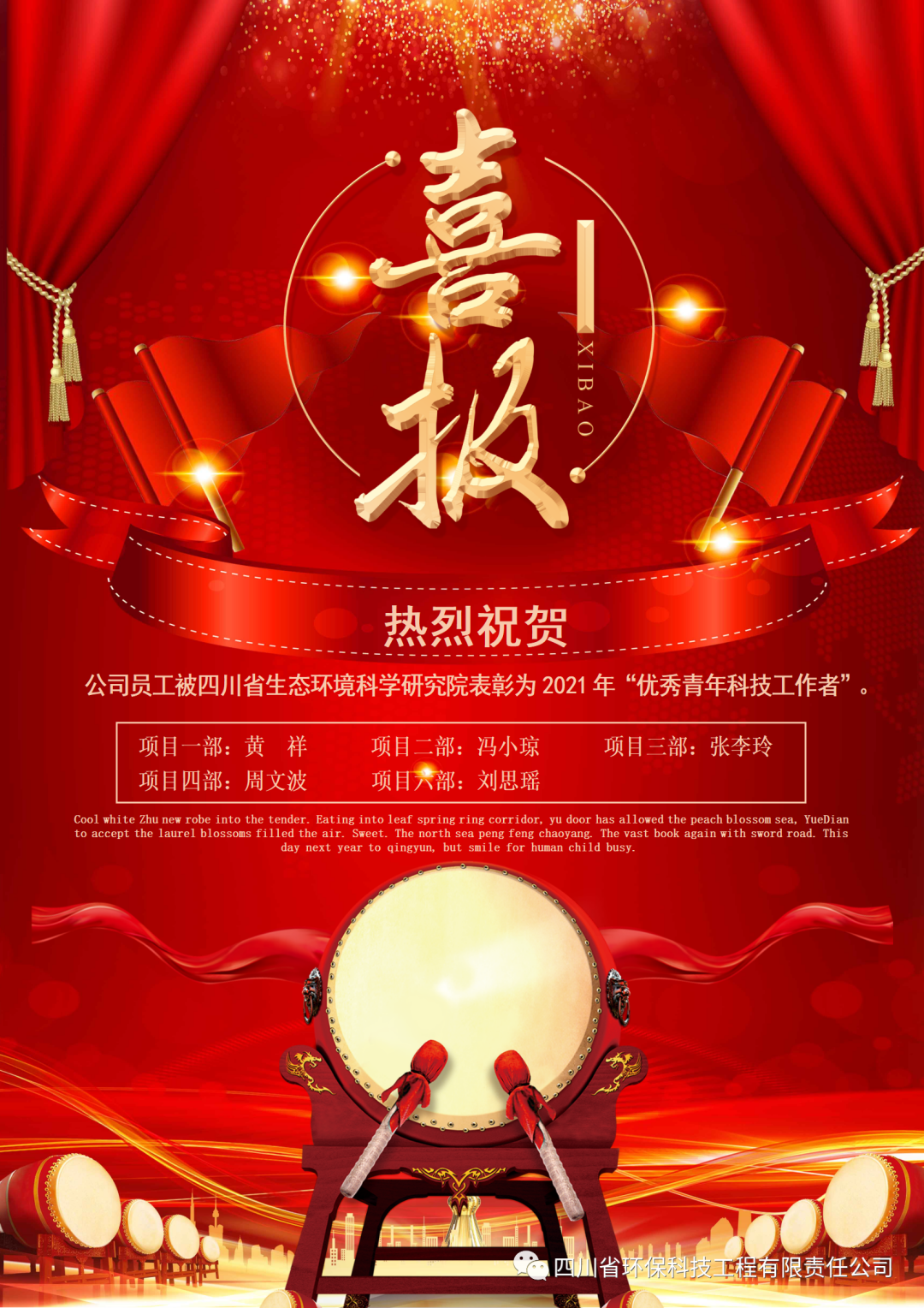 熱烈祝賀:公司員工馮小瓊等6人獲四川省生態環境科學研究院表彰