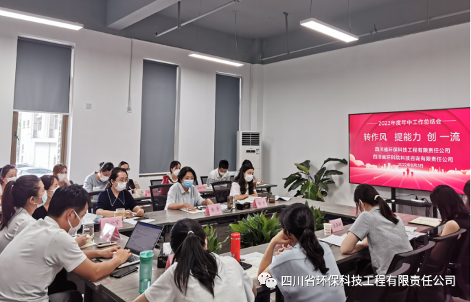 8月3日,四川省環??萍脊こ逃邢挢熑喂?、四川省環科院科技咨詢有限責任公司聯合召開2022年年中工作總結會,會議聽取了公司各部門上半年工作總結匯報,公司黨支部副書記、總經理余丹出席會議并講話。