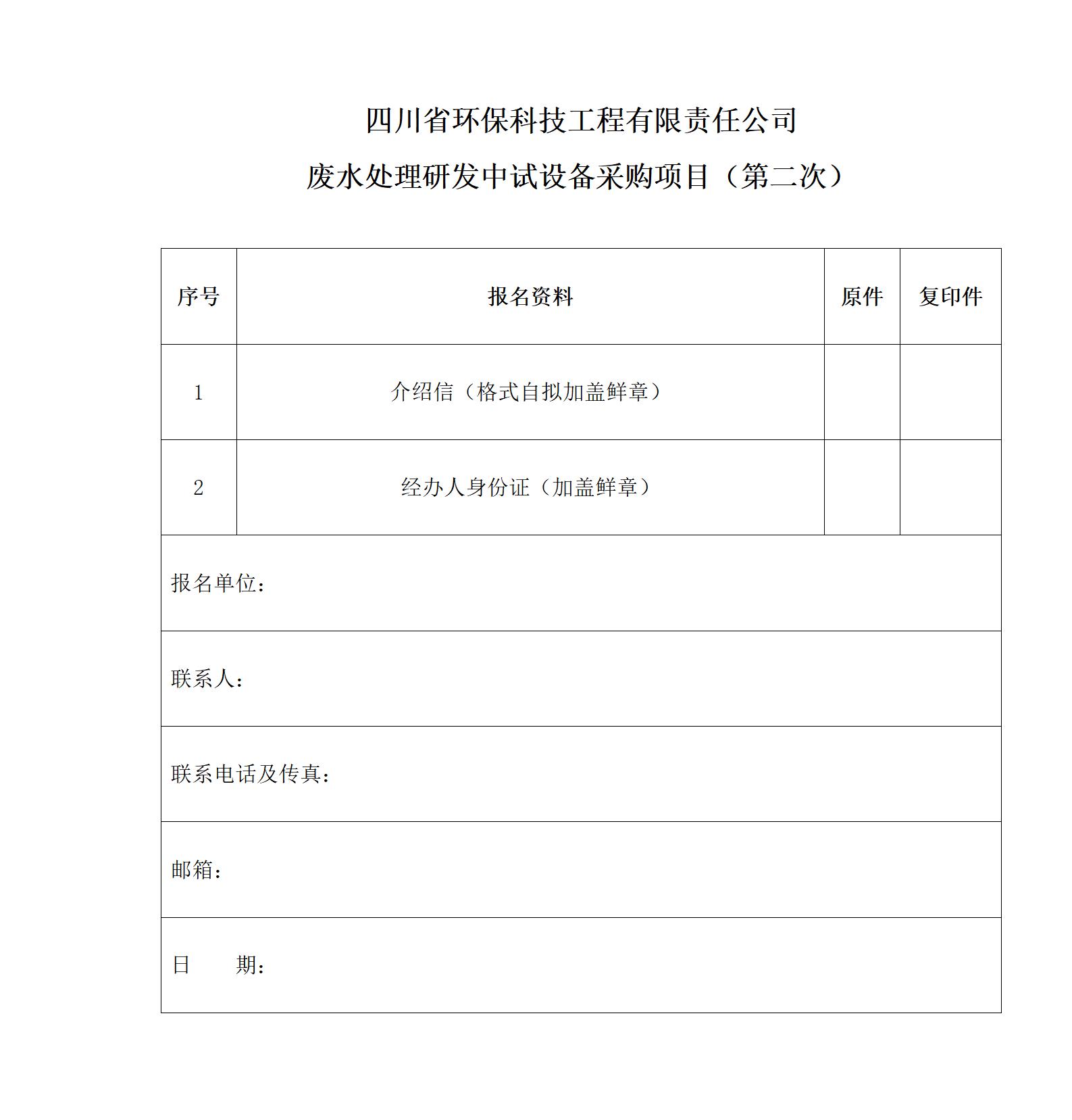 項目名稱:四川省環保科技工程有限責任公司廢水處理研發中試設備采購項目(第二次)